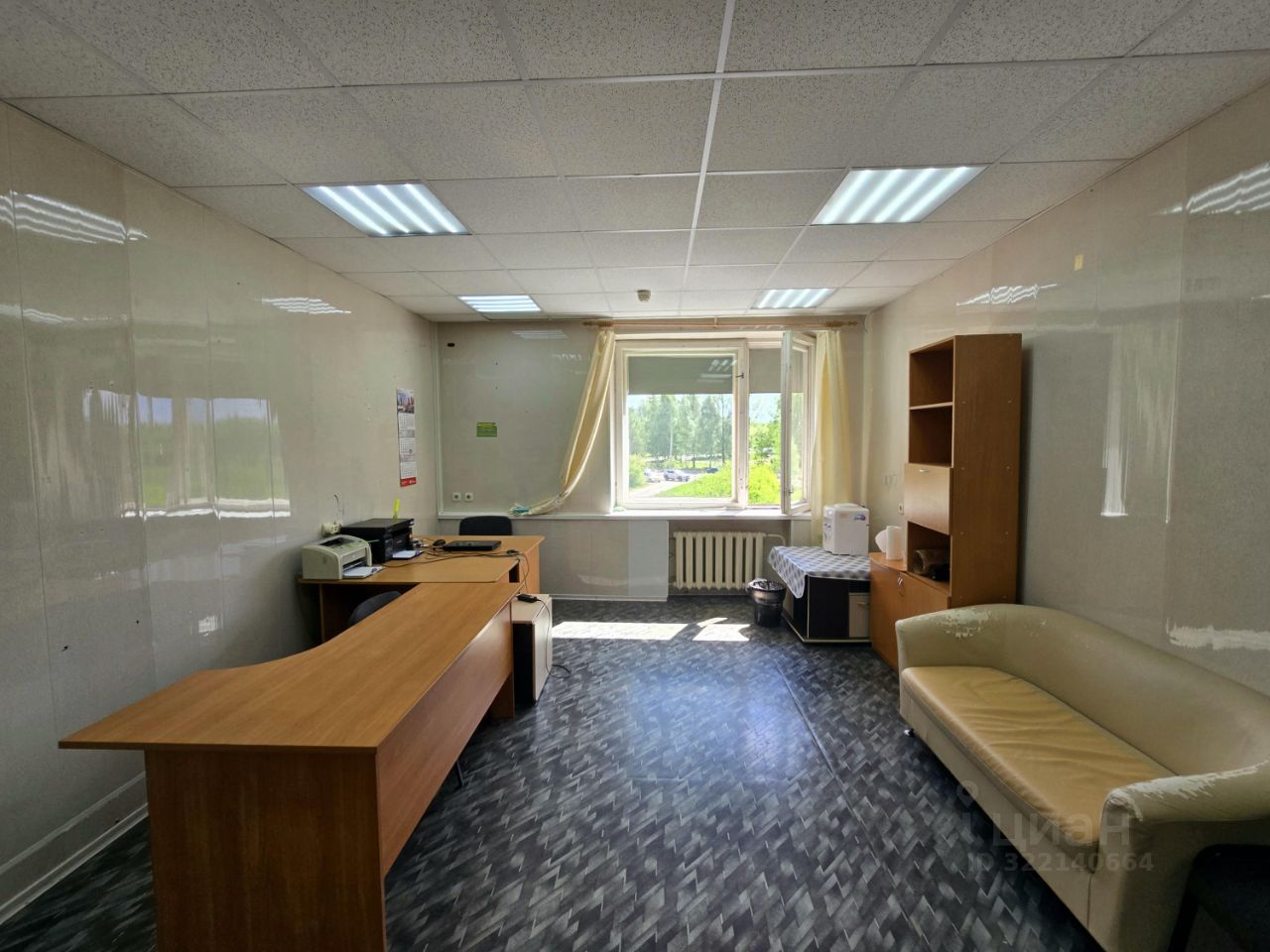 Офис чистый, светлый, с окном.