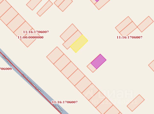 Земельный участок с кадастровым номером 11:16:1706007:357 площадь 49 по адресу Российская Федерация, Республика Коми, г. Воркута, ул. Почтовая