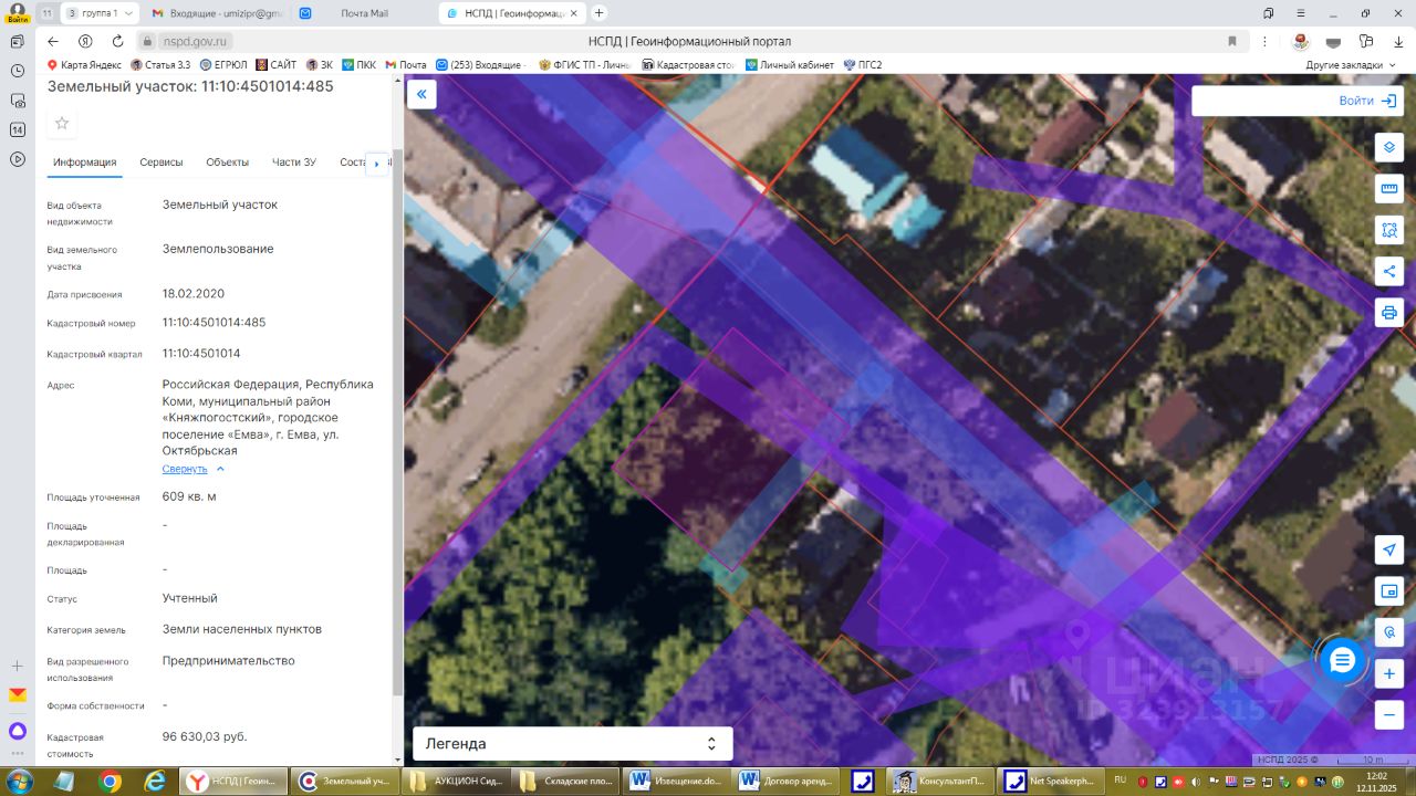 Земельный участок с кадастровым номером 11:10:4501014:485,общей площадью 609,0 кв.м расположенный по адресу: Российская Федерация, Республика Коми, муниципальный район "Княжпогостский", городское поселение "Емва", г. Емва, ул. Октябрьская, в территориальной зоне О-1 (Многофункциональная общественно - деловая зона), вид разрешённого использования: Предпринимательство.