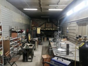 -кузнечный цех, 140кв.м (горн печи газовая, угольная и масляная, молот 80, фрезерный станок, сварочный автомат, плазменная резка, станок усиления гнутия трубы);