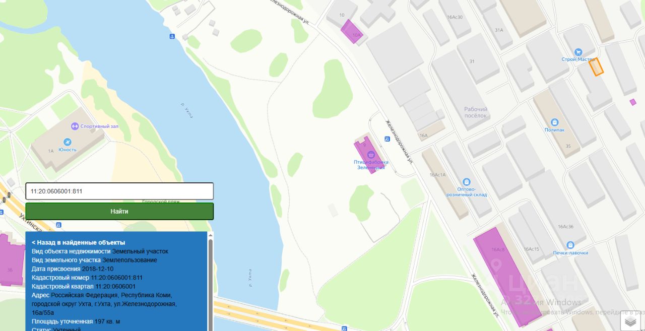 Земельный участок с кадастровым номером 11:20:0606001:811, площадью 197 кв. м., вид разрешенного использования: склады, расположенного по адресу: Российская Федерация, Республика Коми, городской округ Ухта, г. Ухта, ул. Железнодорожная, 16а/55а
