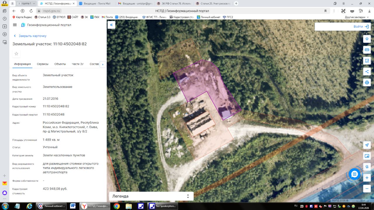 Земельный участок с кадастровым номером 11:10:4502048:82, общей площадью 1489,0 кв.м. расположенный по адресу: Российская Федерация, Республика Коми, м.о. Княжпогостский, г. Емва, проезд Магистральный, з/у 8/2, в территориальной зоне О-1 (Многофункциональная деловая зона), вид разрешённого использования: для размещения стоянки открытого типа индивидуального легкового автотранспорта.
