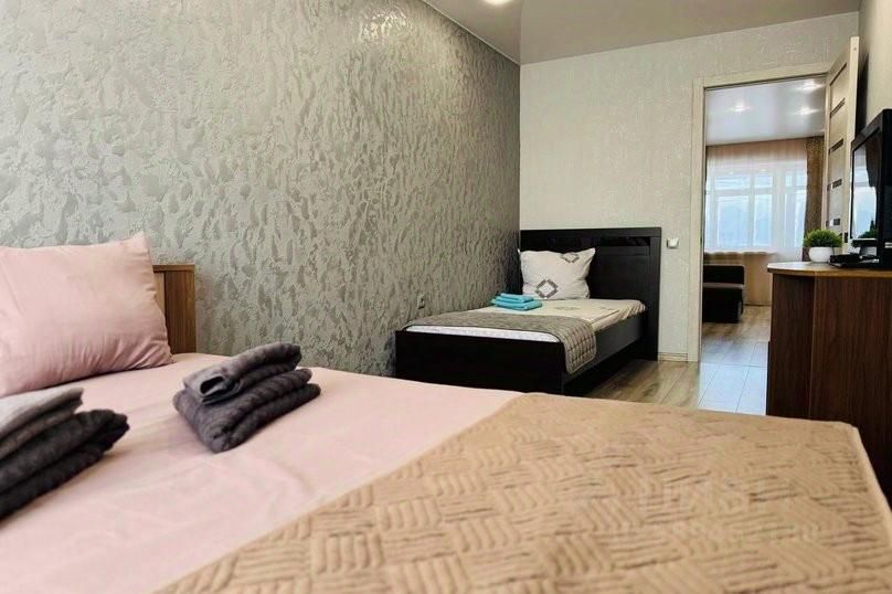 Гостям предоставляется 3 спальных места (двуспальная кровать, двуспальный диван и односпальная кровать)