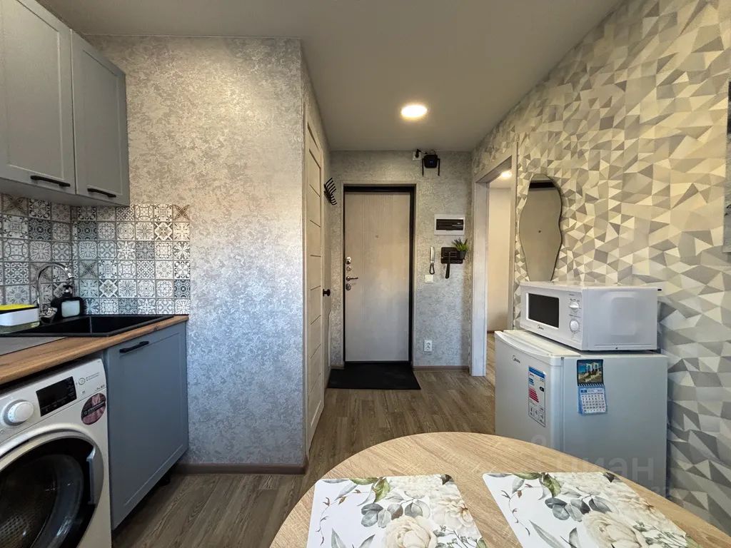 Кухня оснащена всем необходимым для приготовления пищи, включая плиту и микроволновку. Ванная комната светлая и аккуратная, с душевым поддоном и водонагревателем.