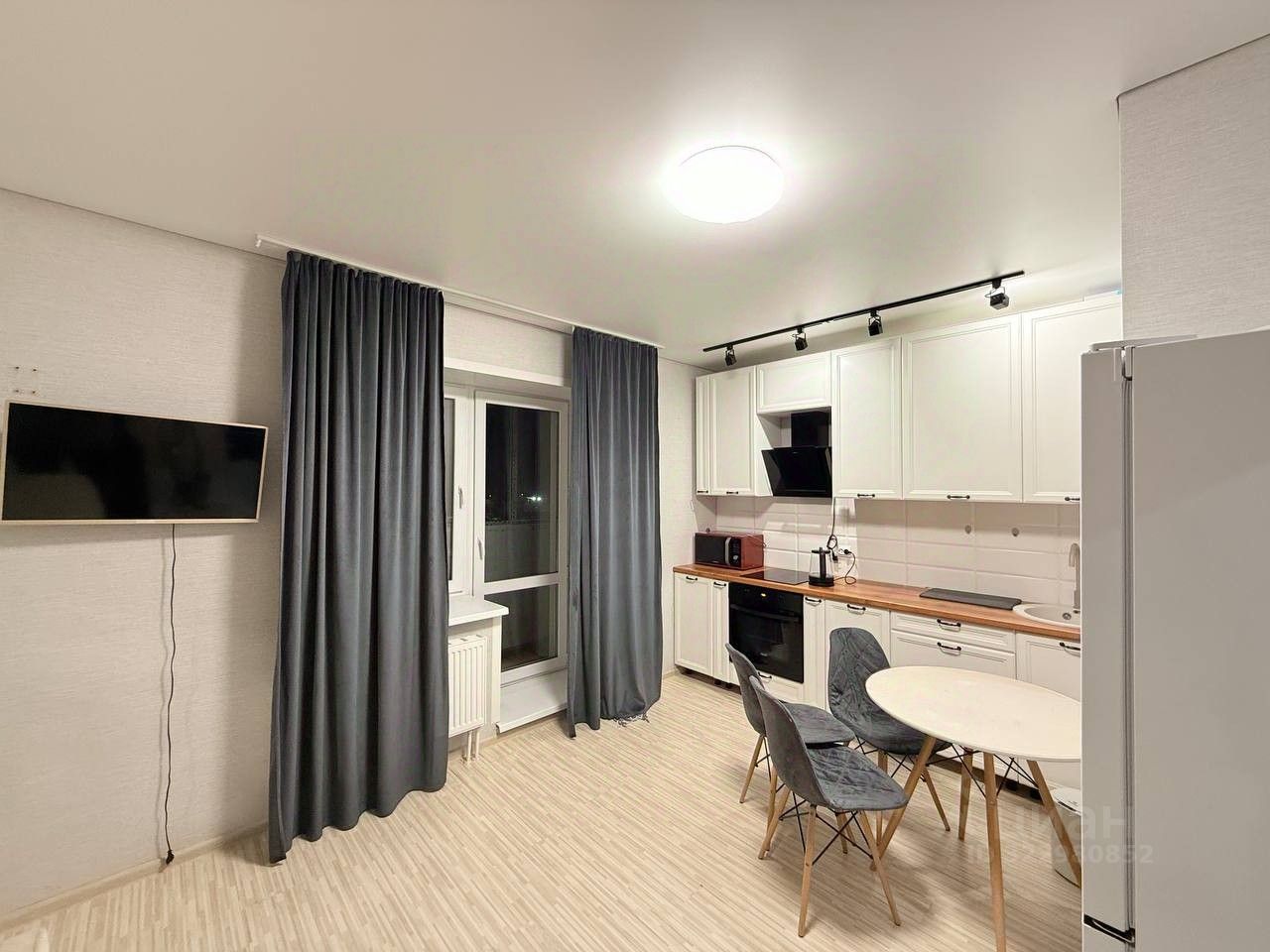Телевизор, микроволновая печь, духовка, кофемашина, чайник, стиральная машина, холодильник. (Маленькую кроватку можно будет убрать если без детей) балкон не утеплен.