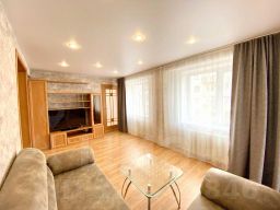 Апартаменты находятся на втором этаже и имеют общую площадь 75 кв. м., где могут разместиться 4 человека. Окна квартиры выходят во двор.