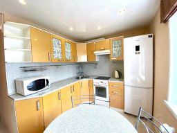 Кухня оборудована бытовой техникой (холодильник, плита, духовка, микроволновая печь) и посудой. На кухне, гости найдут чай, кофе, сахар, конфеты, соль, приправы и растительное масло.