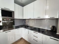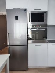Квартира с отличным ремонтом, удобной планировкой, просторной кухней, большим коридором и большой угловой лоджией. На кухне есть посудомоечная машина, холодильник, электроплита, телевизор, в ванной комнате стиральная машина.