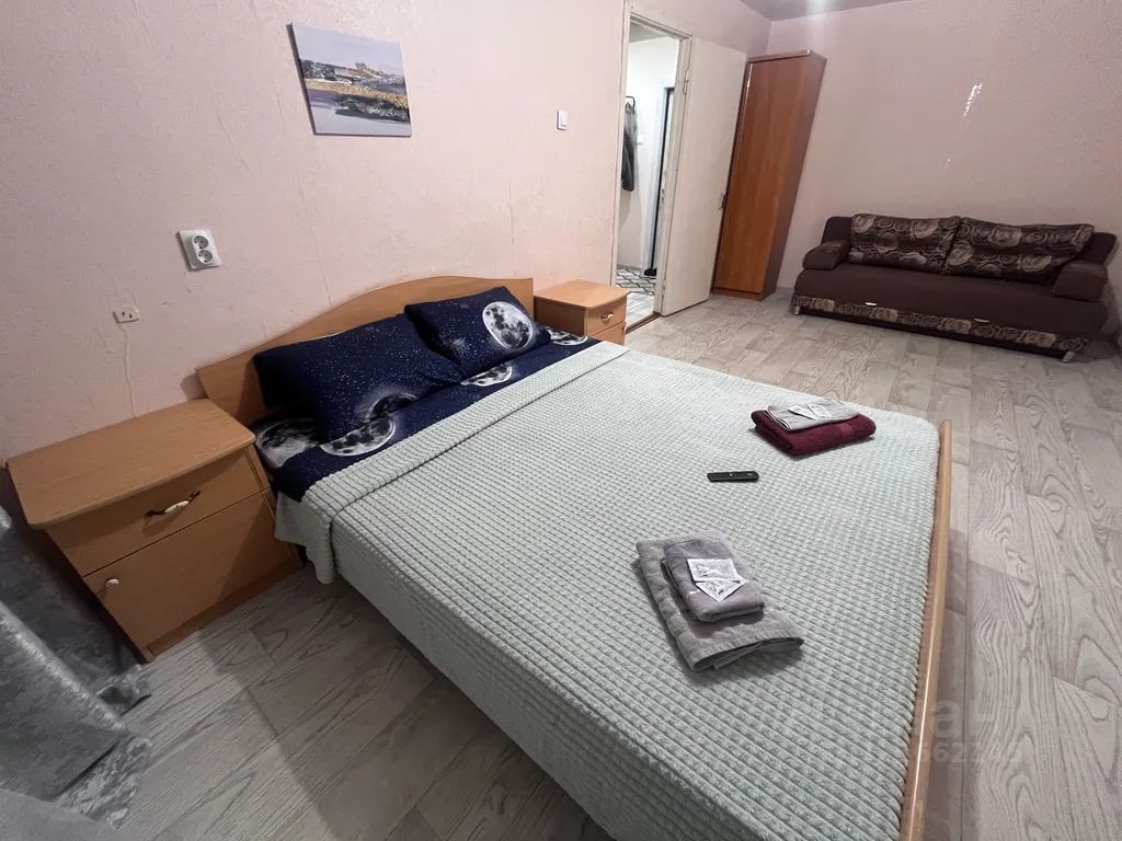 Комфортная большая двуспальная кровать, диван раздвижной. Дополнительный комплект белья оплачивается отдельно 300 ₽.