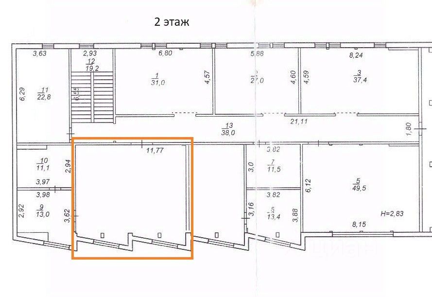 Объект годен под размещение офиса можно использовать для сдачи в аренду. Расположен на втором этаже, имеет два больших окна.