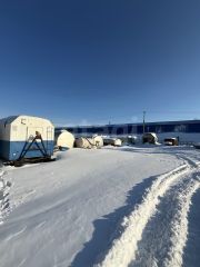 На базе находится просторное здание административно-бытового комплекса (АБК) с двумя этажами. На втором этаже вы можете адаптировать пространство под свои нужды, так как в данный момент идет процесс возведения перегородок. Это отличная возможность создать кабинеты, соответствующие вашим требованиям. Центральное отопление и водоснабжение обеспечивают комфортные условия для работы в любое время года.