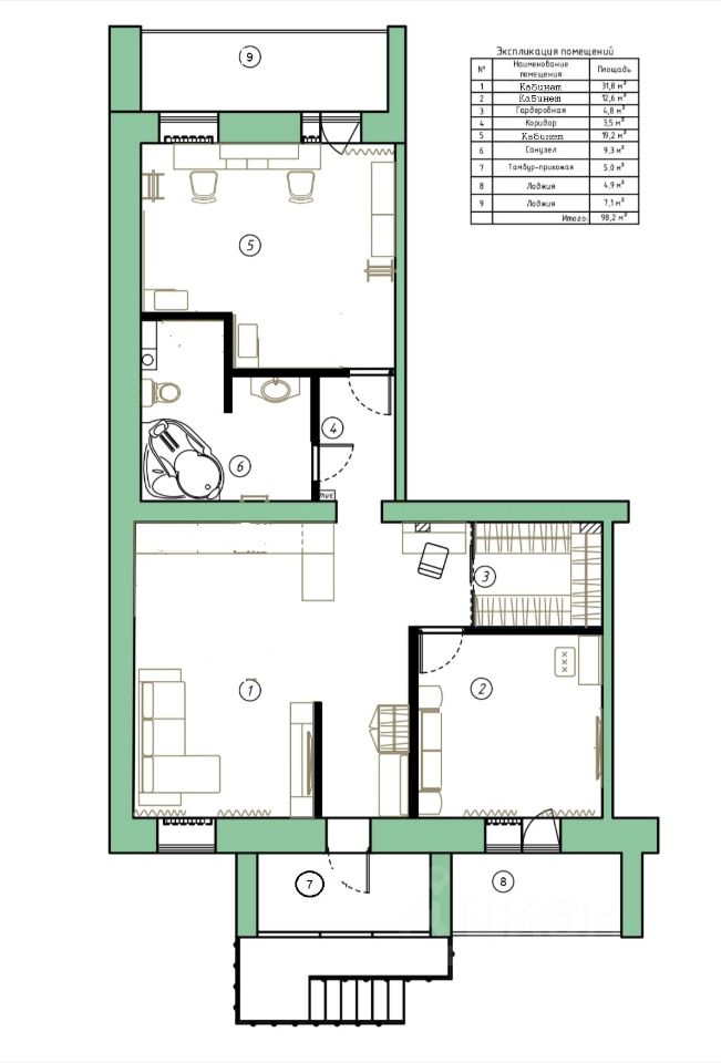 В данный момент помещение используется под жилое, можно переоформить под статус нежилого.