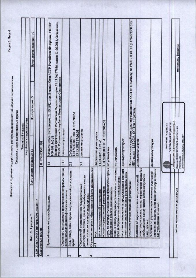 (06-10-26) Земельный участок общей площадью 11613+1-38 кв.м., расположенный по адресу: Республика Коми, г. Вуктыл, кадастровый номер: 11:17:0403001:301, вид разрешенного использования: сельскохозяйственное использование. Категория земель: земли населенных пунктов. Вид права: собственность. Нежилое здание коровника на 400 голов общей площадью 3865,8 кв.м., расположенное по адресу: Республика Коми, г. Вуктыл, производственная территория "Торговый дом "Вуктыльский" ООО "Северагрогаз", год постройки 1979, кадастровый номер: 11:17:0000000:370. Материал наружных стен: железобетонные, кирпичные, Требует капитального ремонта. Вид права: собственность. Нежилое здание ветсанпропускника общей площадью 567,9 кв.м., расположенное по адресу: Республика Коми, г, Вуктыл, производственная территория "Торговый дом "Вуктыльский" ООО "Северагрогаз", год постройки 1977, кадастровый номер: 11:17:0000000:382.