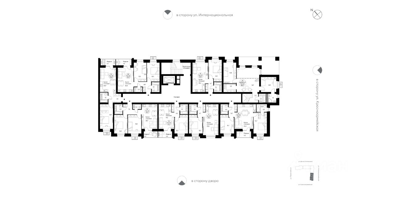На площадке от 2 до 9 квартир. Сквозные подъезды на уровне земли, светопрозрачные входные группы, гостеприимные холлы с колясочными. Скоростной лифт. Тихий, безопасный двор с закрытой территорией, системой видеонаблюдения, ландшафтным дизайном, игровым и спортивным оборудованием.