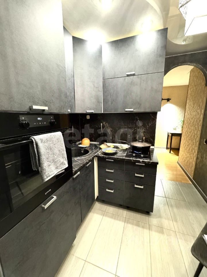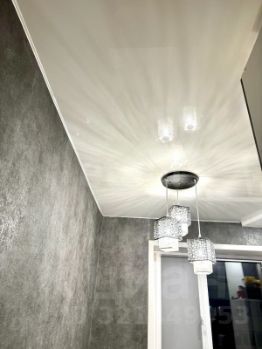 Потолки: натяжной на кухне, в остальных комнатах — оштукатурено и в поклеены обои