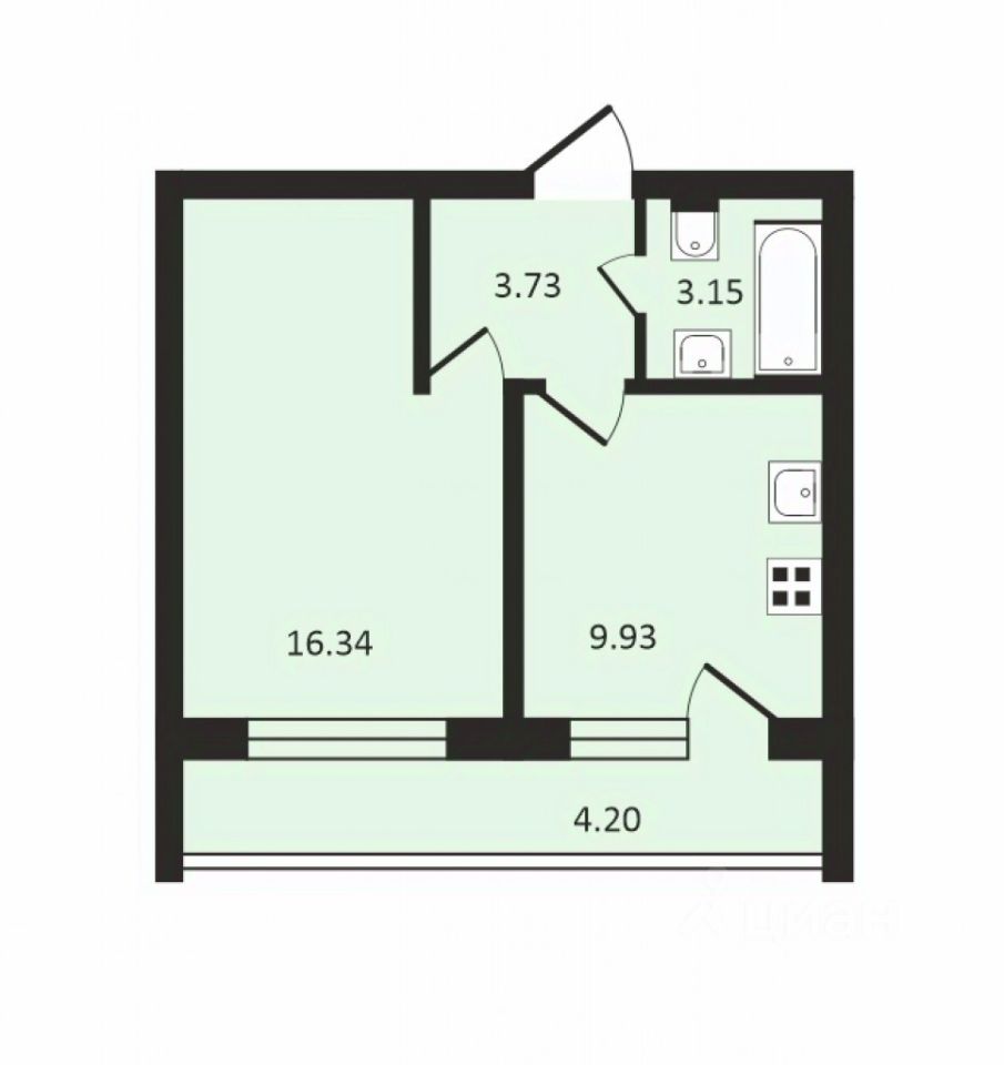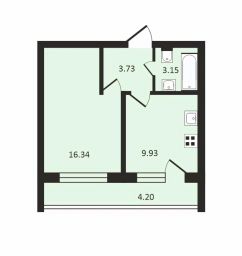 Площадь квартиры 34,5 кв.м + лоджия - 6 кв.м с панорамным остеклением;