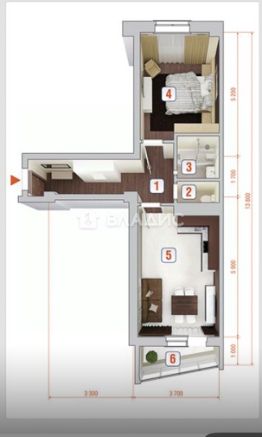- Площадь кухни: 6 кв. м.