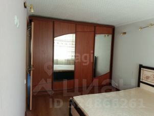 В просторной спальне установлена двухспальная кровать, обеспечивающая комфортный сон и отдых. Для хранения вещей предусмотрен вместительный шкаф-купе, который занимает всю стену и позволяет рационально использовать пространство.