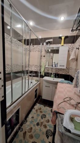 Высококачественный современный ремонт выполнен с использованием качественных материалов и технологий. Остаются встроенные шкафы, изготовленные индивидуально под размер помещений, создавая ощущение гармонии и порядка.