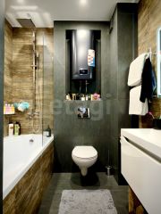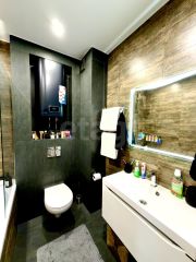Санузел: отделан высококачественным керамогранитом, подчёркивающим изысканный вкус владельца и обеспечивающим долговечность эксплуатации.