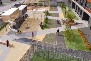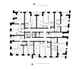 Светопрозрачная входная группа на уровне земли, гостеприимный холл с колясочной и велосипедной. Скоростной лифт.