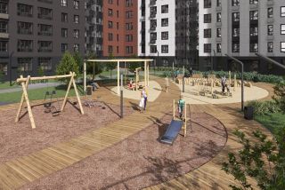 Секция из двух подъездов и 9-ти этажей, до 4-х квартир на площадке. Сквозной подъезд на уровне земли, светопрозрачная входная группа, гостеприимный холл с колясочной. Скоростной грузопассажирский лифт. Тихий, безопасный двор с закрытой территорией, системой видеонаблюдения, ландшафтным дизайном, игровым и спортивным оборудованием. Парковка за пределами двора.