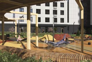 Секция из 14-ти этажей, до 8 квартир на площадке. Верхний этаж — хайфлэты — квартиры с увеличенными до трёх метров потолками. Подъезд на уровне земли, светопрозрачная входная группа, гостеприимный холл с колясочной. Два скоростных лифта. Тихий, безопасный двор с закрытой территорией, системой видеонаблюдения, ландшафтным дизайном, игровым и спортивным оборудованием. Парковка за пределами двора.