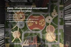 Секция из 14-ти этажей, до 8 квартир на площадке. Верхний этаж — хайфлэты — квартиры с увеличенными до трёх метров потолками. Подъезд на уровне земли, светопрозрачная входная группа, гостеприимный холл с колясочной. Два скоростных лифта. Тихий, безопасный двор с закрытой территорией, системой видеонаблюдения, ландшафтным дизайном, игровым и спортивным оборудованием. Парковка за пределами двора.