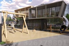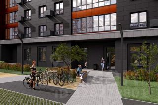 Светопрозрачная входная группа на уровне земли, гостеприимный холл с колясочной и велосипедной. Скоростной лифт.