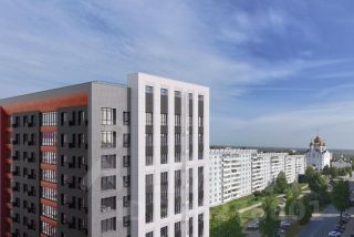 Однокомнатная квартира 14 от застройщика в доме "Символ". Свободная планировка. Коридор с нишей для системы хранения, просторная кухня-столовая (22,3 м²) с французским выходом на лоджию, большая спальня с нишей для шкафа, совмещенный с/у. Вид во двор.