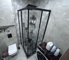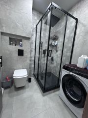 Санузел совмещенный, оформлен стильной плиткой и оснащен душевой кабиной. Из окон открывается вид на тихий двор с закрытой территорией и спортивной площадкой.