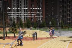 Секция из 14-ти этажей, до 6-ти квартир на площадке. Подъезд на уровне земли, светопрозрачная входная группа, гостеприимный холл с колясочной. Два скоростных лифта. Тихий, безопасный двор с закрытой территорией, системой видеонаблюдения, ландшафтным дизайном, игровым и спортивным оборудованием. Парковка за пределами двора.