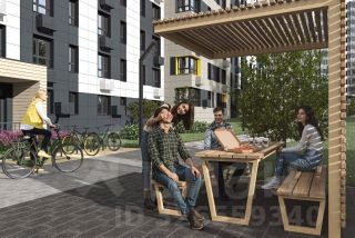 Двор ЖК "Бьярма" станет местом притяжения всей семьи. На площадках появятся экологичные европейские игровые комплексы для детей разного возраста. Качество развивающего оборудования соответствуют современным мировым стандартам. Отдельно предусмотрены площадки с тренажёрами и зоны для досуга на свежем воздухе.Двор украсят цветники из злаковых и многолетних растений, кустарники, хвойные и лиственные деревья.
