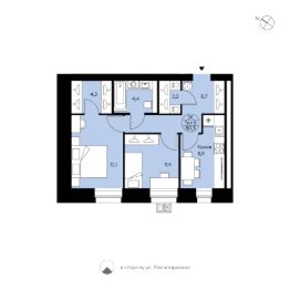 Двухкомнатная квартира свободной планировки. Прихожая с местами для систем хранения и гардероб. Отдельная кухня (10,3 м²), совмещённый с/у, две просторные спальни с большими окнами с низкими подоконниками. Вид в сторону ул. Лесопарковой.