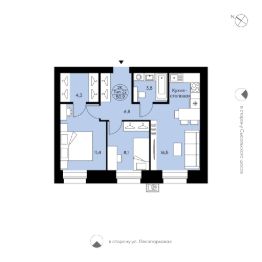 Двухкомнатная квартира свободной планировки. Просторная кухня-столовая. Гардеробная, места для систем хранения, большой совмещенный с/у. Вид в сторону ул. Лесопарковой.