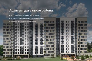 На площадке от 5 до 13 квартир. Сквозные подъезды на уровне земли, светопрозрачные входные группы, гостеприимные холлы с колясочными и велосипедными. Два скоростных лифта. Тихий двор с системой видеонаблюдения, ландшафтным дизайном, игровым и спортивным оборудованием.