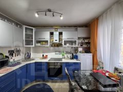 На кухне установлен практичный встроенный кухонный гарнитур. Установлена вытяжка, встроенный духовой шкаф.