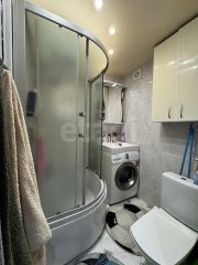 Санузел совмещённый, стены выложены керамической плиткой. Под раковиной установлена стиральная машина. В санузле установлена принудительная вентиляция.