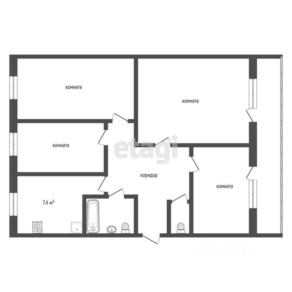 7,4 м²