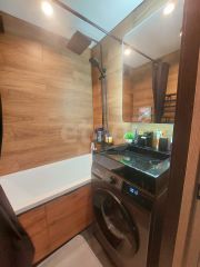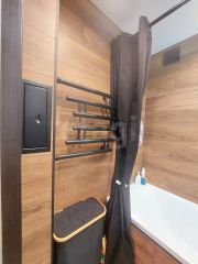 В квартире выполнен свежий качественный ремонт: уложен ламинат, установлены пластиковые окна и натяжные потолки. Кухня оборудована встроенной техникой и гарнитуром, который остается новому владельцу вместе со шкафом-купе.