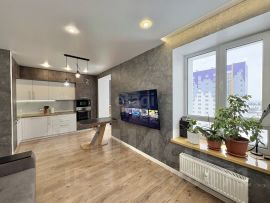 В квартире имеется вместительная кухня-гостиная, соединенная с теплым балконом (тройное остекление, теплый пол).