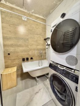 В ремонте использованы качественные материалы и способы отделки - натяжные потолки, керамическая плита, частично декоративная штукатурка, ламинат.