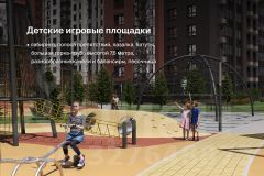 Секция из 12-ти этажей, до 4 квартир на площадке. Верхний этаж — хайфлэты — квартиры с увеличенными до трёх метров потолками. Подъезд на уровне земли, светопрозрачная входная группа, гостеприимный холл с колясочной. Скоростной лифт. Тихий, безопасный двор с закрытой территорией, системой видеонаблюдения, ландшафтным дизайном, игровым и спортивным оборудованием. Парковка за пределами двора.