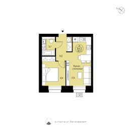 Однокомнатная квартира свободной планировки. Просторная кухня-столовая (17,1 м²), совмещённый с/у, места для систем хранения, отдельная спальня, большие окна с низкими подоконниками. Вид в сторону ул. Лесопарковой.