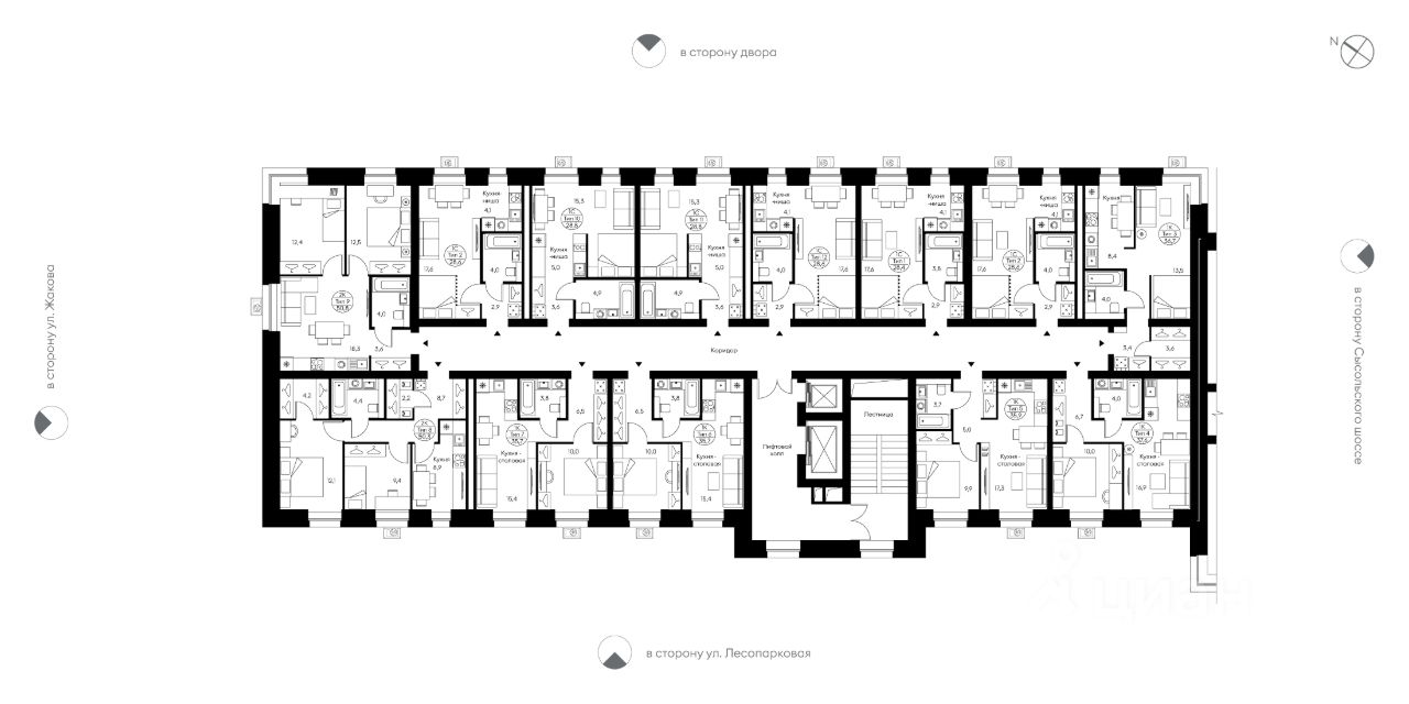 Однокомнатная квартира свободной планировки. Просторная кухня-столовая (17,1 м²), совмещённый с/у, места для систем хранения, отдельная спальня, большие окна с низкими подоконниками. Вид в сторону ул. Лесопарковой.