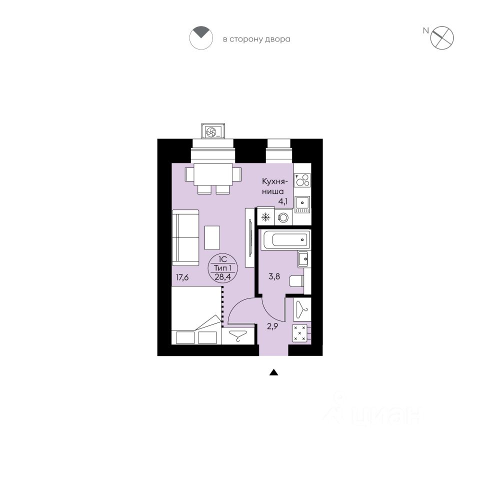 Общая площадь28,4 м²
