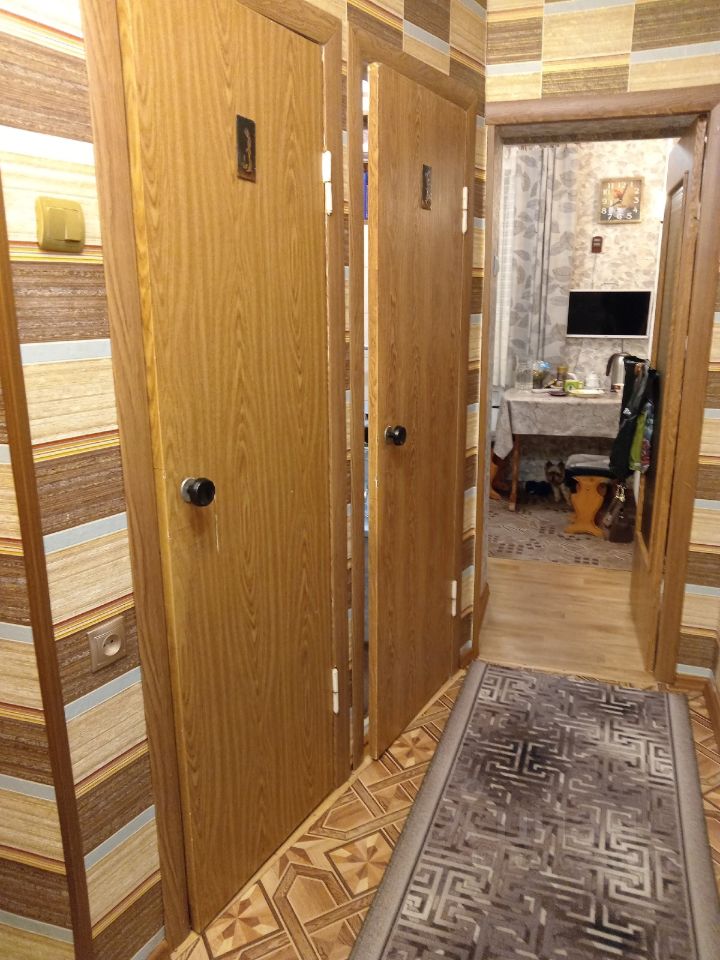 На полу линолеум. Стены выровнены, проводка заменена, стеклопакеты.
