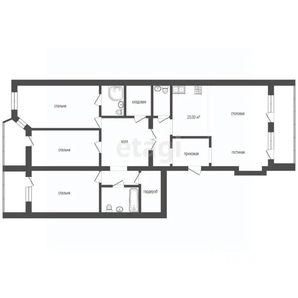 При продаже остаются кухонный гарнитур, встроенная прихожая, стиральная машина, шкафы в гардеробной и кладовой.