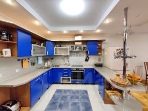 Планировка: 3 спальни, одна из них с собственной ванной комнатой с джакузи и туалетом; просторная кухня-столовая с гостиной зоной; холл, используемый в качестве кабинета; вместительная гардеробная комната, кладовая, ещё одна ванная комната и 2 туалета. Все с/у в кафеле, установлен водонагреватель. Также в квартире предусмотрены 3 лоджии, выходящие на разные стороны, что обеспечивает хорошее проветривание и свежий воздух. Открывается великолепный вид на город.