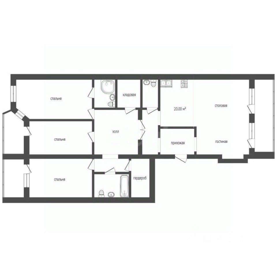 Общая площадь квартиры 165,4 м2 с 3-мя лоджиями.